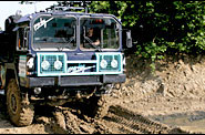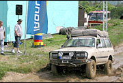 Die größte Offroad-Messe Deutschlands kommt ganz ohne aufwändige Messestände, polierte Boliden und bunte Bühnenbeleuchtung aus. Sie kommt sogar ohne Hallen aus - die Messe findet überwiegend unter freiem Himmel und unter Zeltdächern statt. Auf einem ehemaligen Gelände der US-Armee bei Bad Kissingen entsteht eine echte Allrad-Erlebniswelt, mittlerweile zum sechsten Mal. Hier drehen sich Geländewägen nicht langweilig auf Präsentiertellern, sondern werden artgerecht im Schlamm gebadet. Aussteller navigieren ihre Fahrzeuge über eine anspruchsvolle Piste mit knackigen Steigungen und tiefen Wasserdurchfahrten. Spektakulär für die Zuschauer am Rande - und noch viel mehr für die Passagiere in den Allradlern.